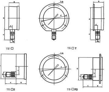 儀表由測量系統(包括接頭、波紋膜盒等),傳動機構(包括拔桿機構,齒輪傳動機構),指示部件(包括指針與度盤)和外殼(包括表殼、襯圈和表玻璃)所組成。儀表的工作原理是基于波紋膜盒在被測介質的壓力作用下,其自由端產生相應的彈性變形,再經齒輪傳動機構的傳動并予放大,由固定于齒輪軸上的指針逐將被測值在度盤上指示出來。還有調零裝置,可以方便調整零位。