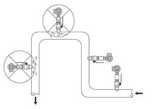 二、安裝位置的選擇:安裝位置必須保證管道內始終充滿被測流體。傳感器安裝管道上游側直管段長度大于8D,下游側直管段長度不小于5D。
