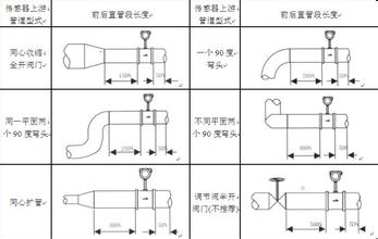 若流量計安裝點上游有90°彎頭或下行接頭,流量計上游應有不小于20D的等徑直管段,下游應有不小于5D的等徑直管段。