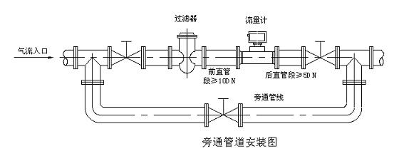 2.為了保證測量準(zhǔn)確,在上游則不應(yīng)設(shè)置流動調(diào)節(jié)閥,表前直管段長度不得小于5DN,表后直管段長度不得小于3DN,且法蘭連接式的(指低壓)密封墊圈不得突入管道內(nèi)。接頭快裝式的在焊接頭前應(yīng)卸下表殼及顯示儀再進(jìn)行焊接。